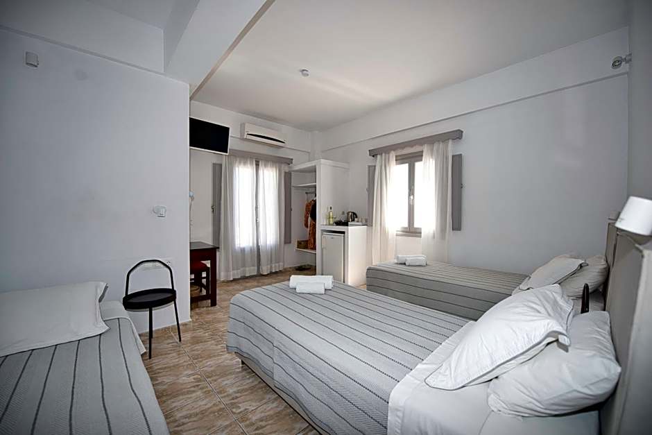 Opening to a balcony with Aegean Sea view, this room is fitted with iron beds and offers air conditioning, a flat-screen satellite TV, fridge and free WiFi. Please note that upper floors are only accessed by stairs.